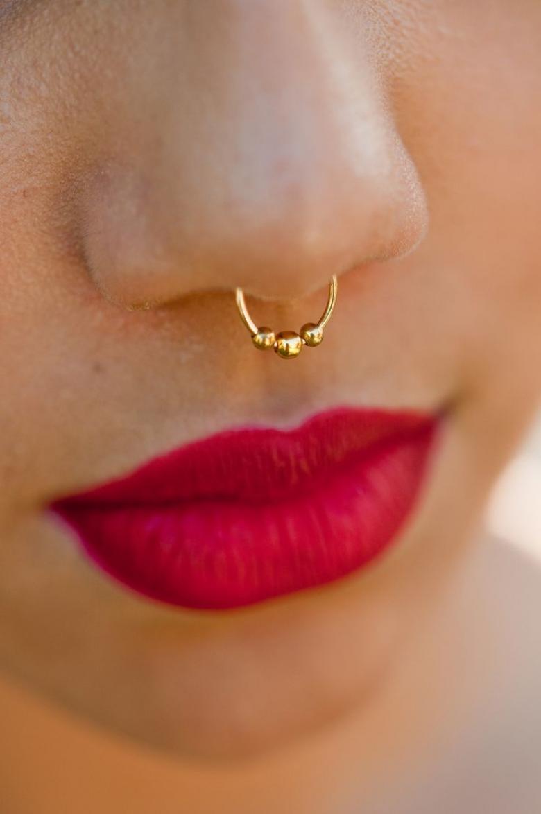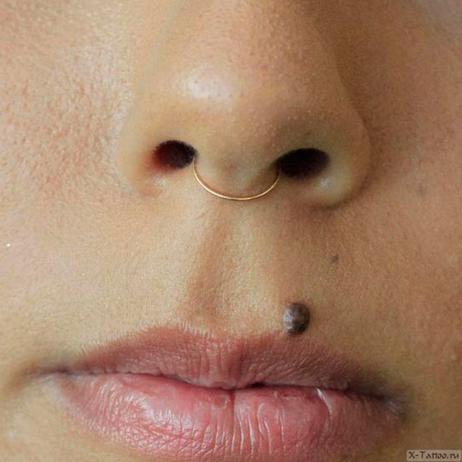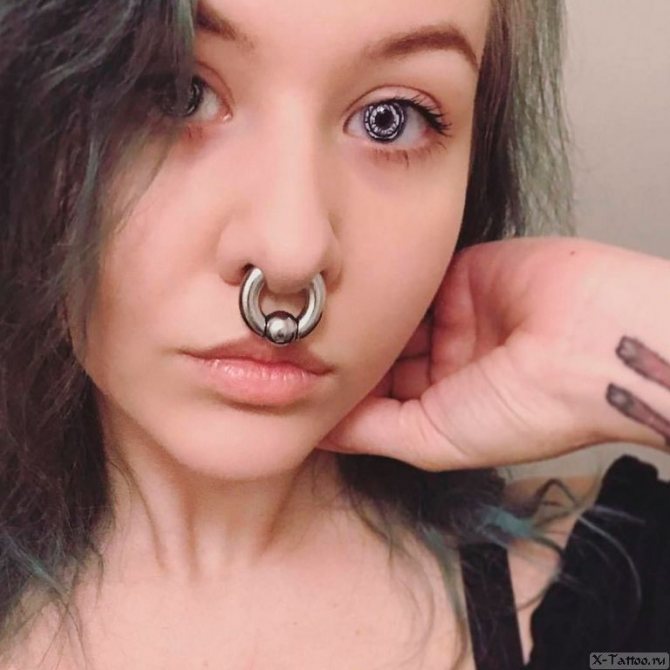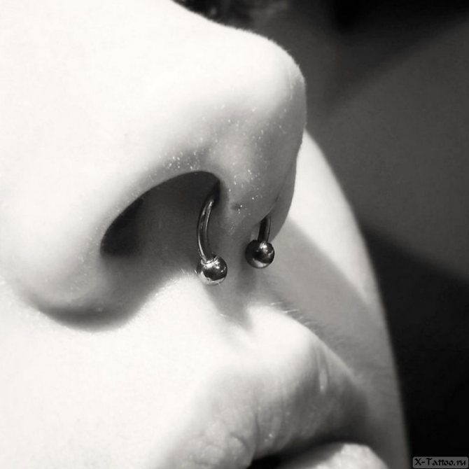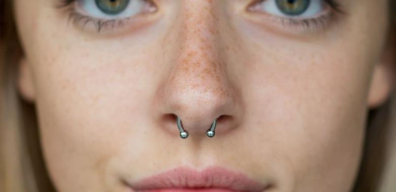 Le piercing du septum est un pseudo-piercing du septum. En fait, la ponction est effectuée dans les tissus mous près de la pointe du nez et n'affecte pas du tout directement la cloison nasale.