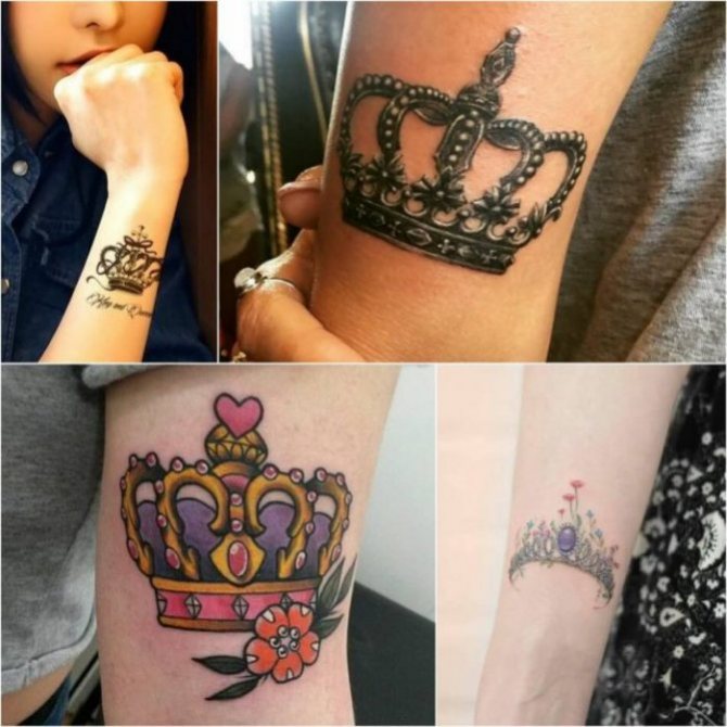 Enfant, beaucoup de filles rêvent d'être des princesses. Et plus tard - les reines. Parfois, un tatouage avec une couronne parle de la perception de soi d'une fille qui... "a confiance en elle et connaît sa propre valeur..
