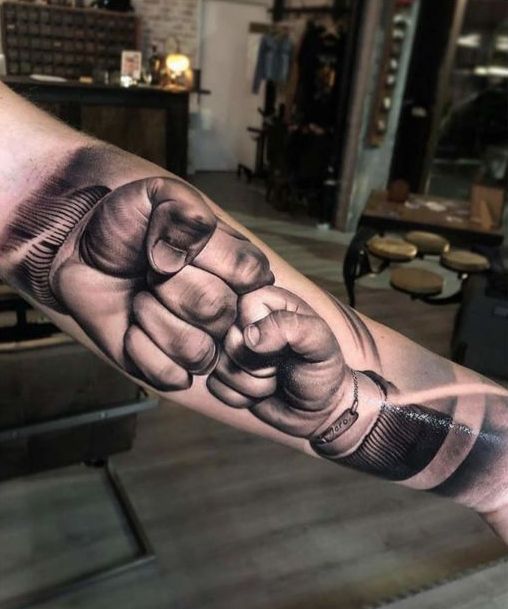 Mais il y a des cas où un poing serré est un geste très délibéré. Une personne menace ouvertement et délibérément un adversaire et l'avertit des conséquences négatives de ses actes. Dans ce contexte, le tatouage signifie la détermination, la défense de ses intérêts, une forte volonté et la capacité de se défendre.