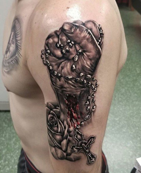 Le poing avec une rose ou une autre fleur indique une dualité de la nature. Le propriétaire d'un tel tatouage dans des situations difficiles peut faire preuve de courage, de bravoure et de détermination, et dans la vie simple d'être doux et romantique.