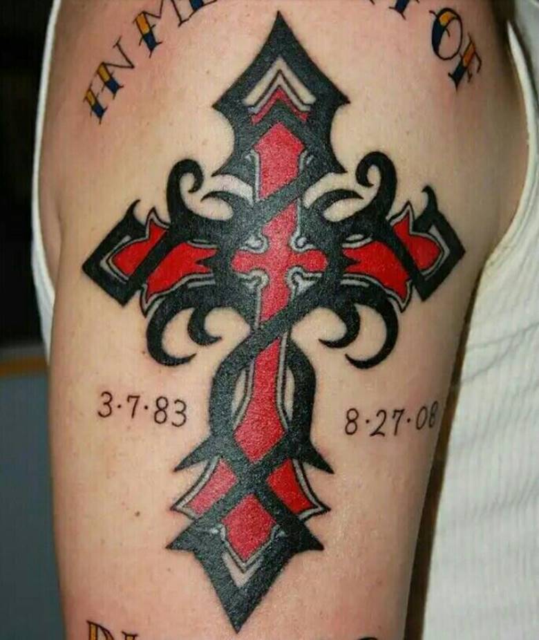La croix était dessinée sur le corps à l'époque païenne - elle signifiait alors l'union entre un homme et une femme, avec l'avènement du christianisme s'est ajoutée une signification religieuse - et plus tard un thème militaire. Aujourd'hui, c'est l'un des tatouages les plus populaires. La croix est également épinglée en mémoire d'un être cher.