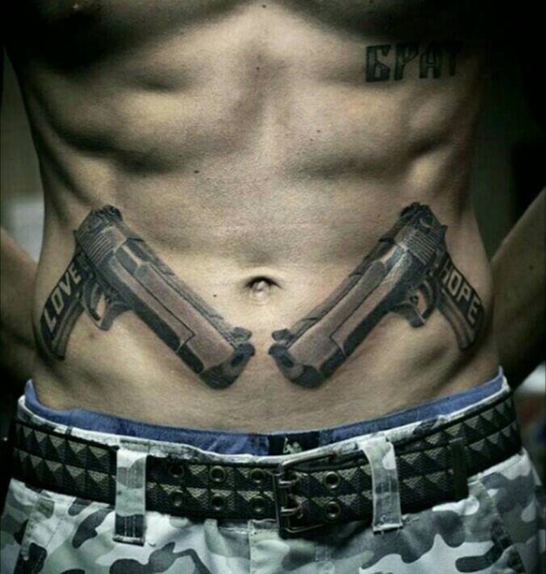 L'armée - un métier typiquement masculin depuis la nuit des temps, la passion des armes, l'admiration pour les prouesses militaires se reflètent dans les tatouages.