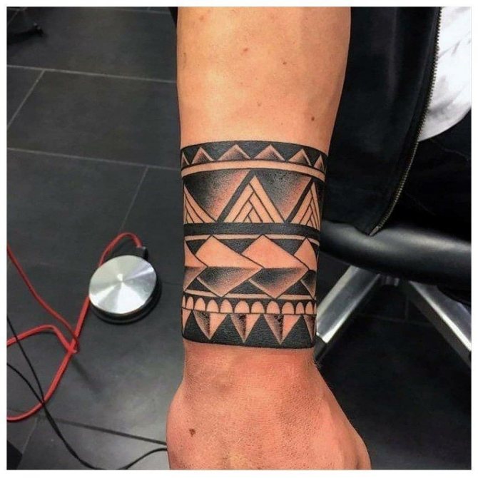 Motif Trayble. - Le plus souvent, il n'y a qu'un seul motif, mais si vous faites de gros efforts, vous pouvez réaliser un ornement entier sur une zone limitée de votre peau. Les motifs sont parvenus jusqu'à nous depuis les anciens Mayas et les Indiens Maoris. Ils signifient le patronage de puissances supérieures et l'unité du corps et de l'âme humains.