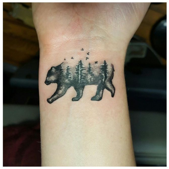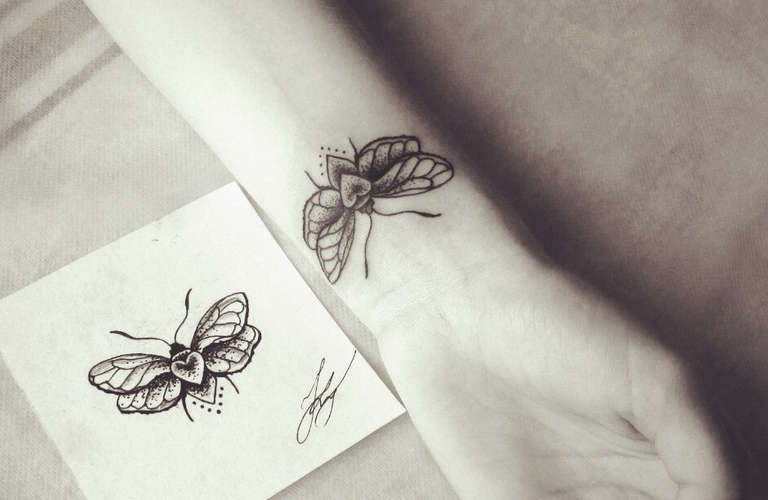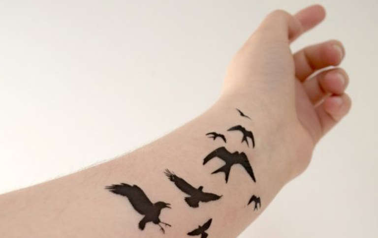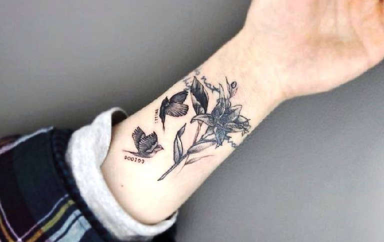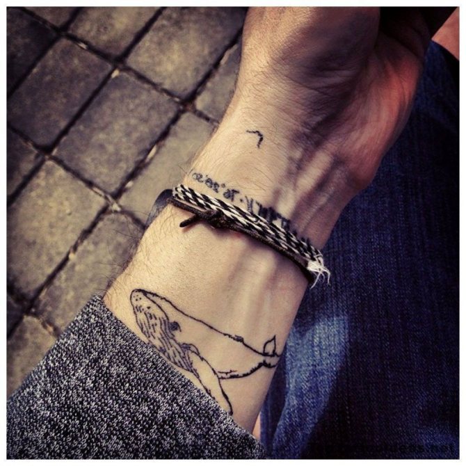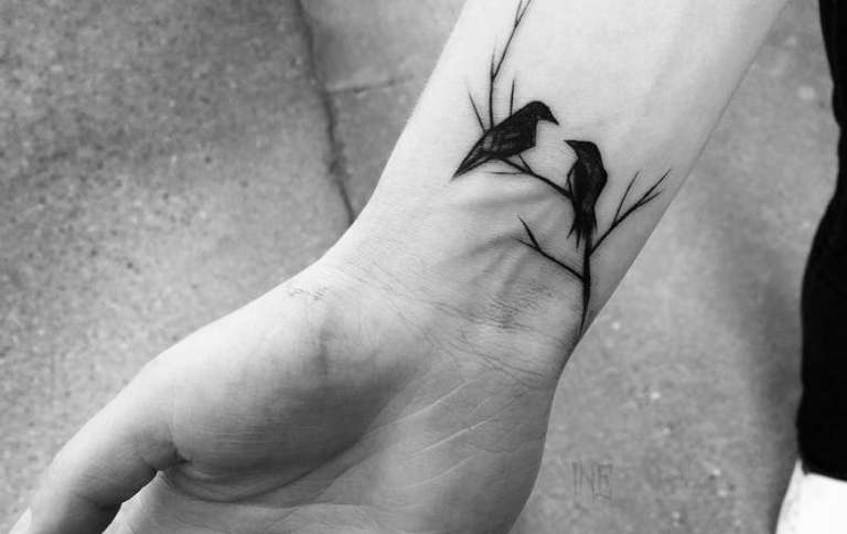 Les animaux sont plus susceptibles de n'avoir qu'un museau, un rictus, une patte ou une empreinte, et les dessins miniatures minimalistes sont également appropriés. Les oiseaux se placent plus facilement sur le poignet et les hommes choisissent souvent des corbeaux, des aigles, des colibris ou des volées. Les insectes sont également harmonieux, ils sont différents : scarabées, araignées, coccinelles, papillons de nuit et guêpes. Les fleurs sont moins courantes et peuvent être des pivoines, des lotus et des roses.