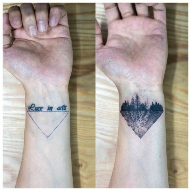 Les meilleurs tatouages dans la zone du pliage du bras et de la sensation de pouls peuvent être réalisés dans toutes sortes de styles, tout dépend du choix et des préférences du client, des recommandations du maître et de la sélection du croquis. Les motifs les plus en vogue aujourd'hui sont les suivants :