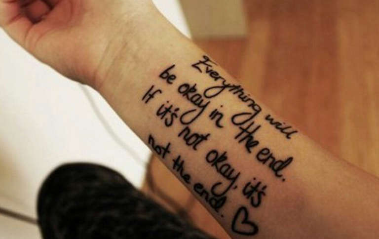 Une inscription dans une petite partie du corps aurait l'air originale et compréhensible pour un homme. Il peut s'agir d'un tatouage qui influence l'avenir, motive le porteur, est un rappel d'événements passés ou une devise pour la vie. Les thèmes d'inscription les plus couramment choisis sont