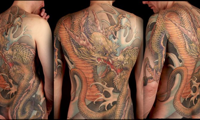 Plus difficile d'élargir les symboles à l'échelle du dos, de l'abdomen, des cuisses. Ici, il est nécessaire d'ajouter un accompagnement. Ils deviennent un sujet quelconque pour les lettres. Ils peuvent être des flammes, ou des vagues de la mer.