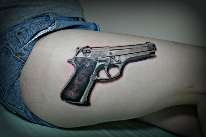 Par ailleurs, un tatouage avec une arme à feu est synonyme de détermination. Une telle personne ne peut être détournée de son chemin, elle n'écoute personne et ne perçoit rien.