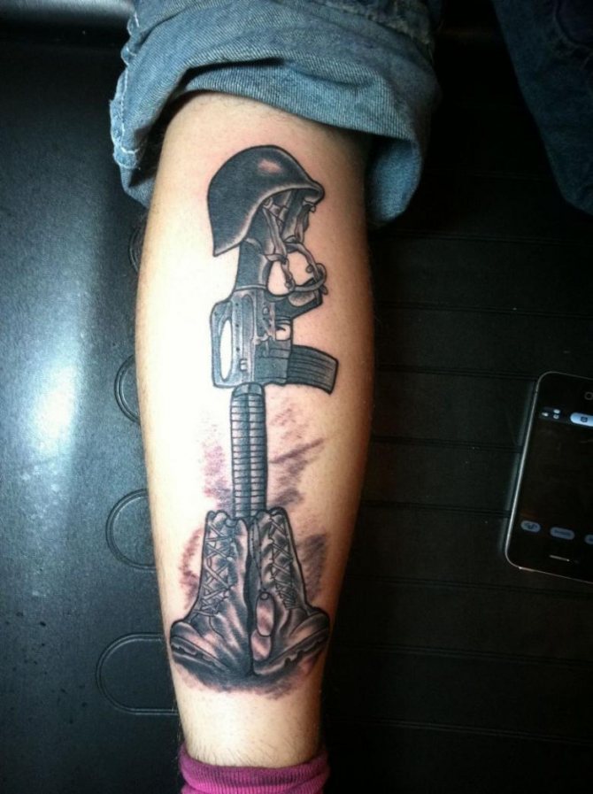 Les tatouages d'armes sont généralement appliqués par les soldats, afin qu'ils n'oublient pas les moments qu'ils ont vécus. C'est aussi un souvenir pour les membres des services militaires.