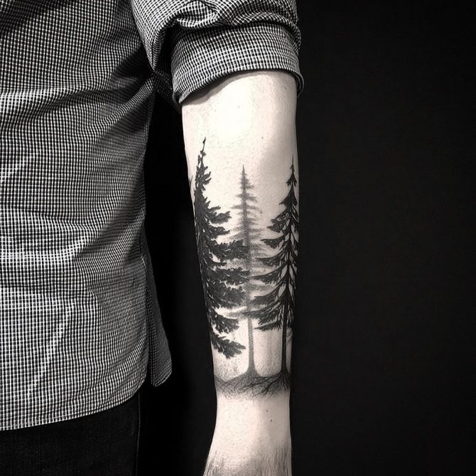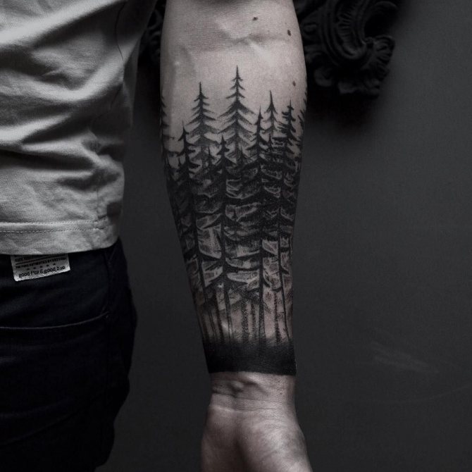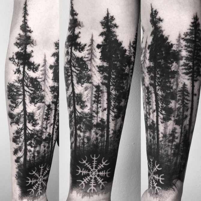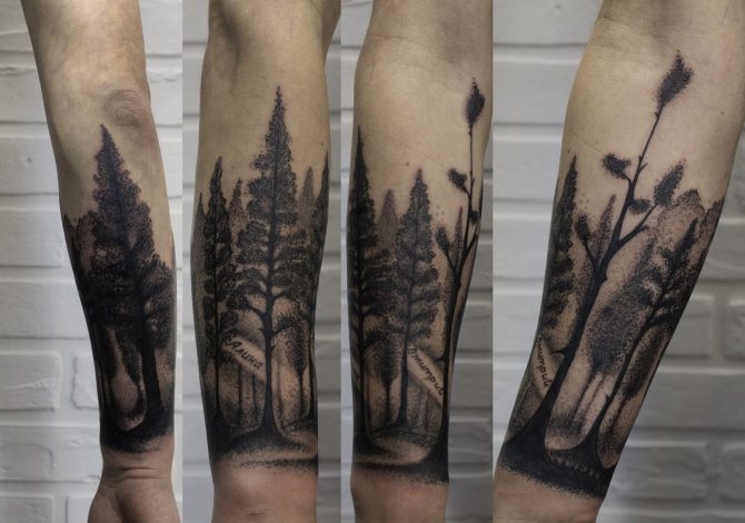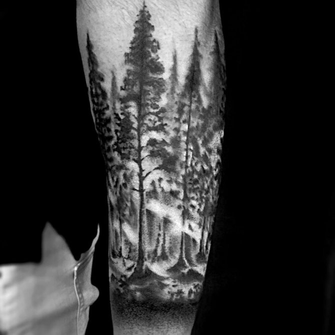 Dans le sens commun, un tatouage en forme de forêt fait partie de la nature et représente sa beauté, une sorte de mystère. Parce qu'une forêt est un monde entier avec ses propres règles et lois. Vous avez certainement entendu différentes histoires et même des légendes sur des événements excitants ou terrifiants qui se sont déroulés dans les bois. C'est pour cette raison que l'on estime qu'un tel tatouage ne peut avoir une signification univoque. C'est pourquoi, avant d'appliquer le motif sur votre corps, essayez de bien réfléchir pour qu'il reflète exactement le sens que vous y mettez.