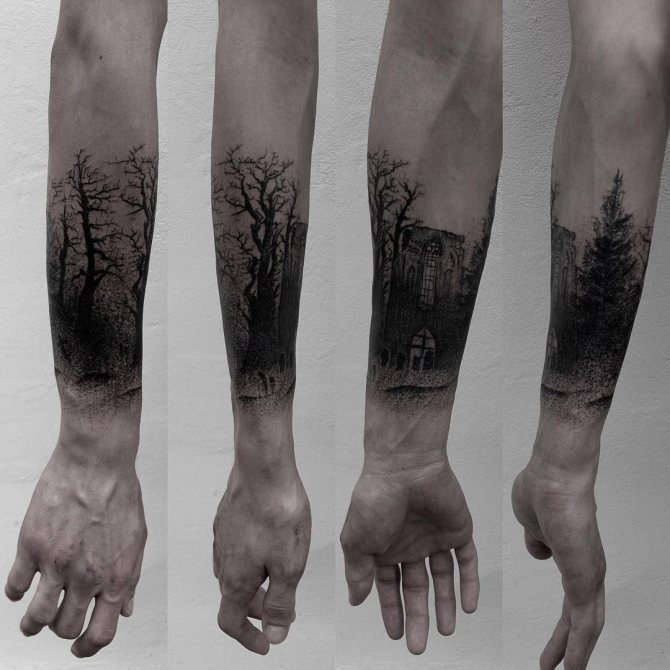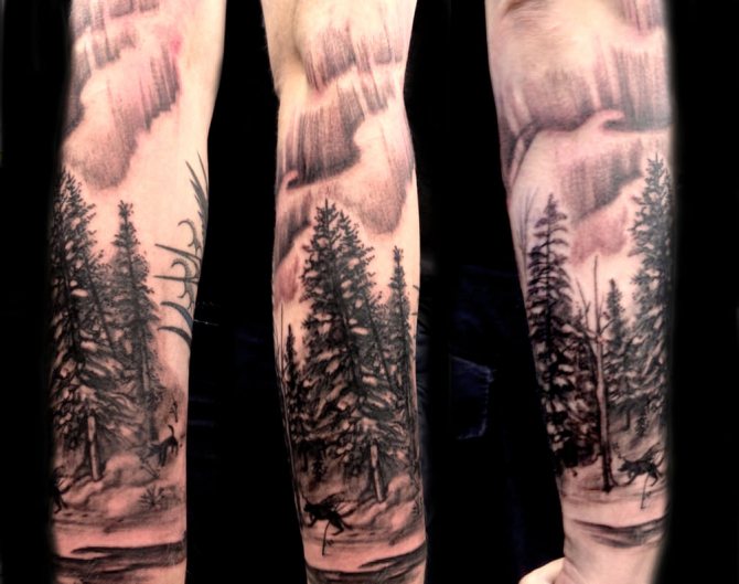 Souvent, les propriétaires d'un tatouage forestier montrent au monde qu'ils vivent selon leurs propres règles. Ils choisissent leurs amis avec soin et sont très protecteurs de leur espace personnel. Ce schéma est souvent le signe de la richesse du monde intérieur d'une personne. Dans ce cas, il est principalement choisi par des personnes créatives qui savent exactement ce qu'elles veulent et ne dépendent pas de l'opinion des autres.