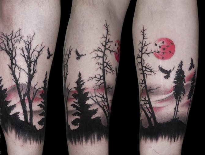 Le tatouage du bosquet de bouleaux a une signification légèrement différente. Elle caractérise principalement les rêveurs et les personnes créatives. Le motif lui-même est assez léger et indique un caractère doux de la personne qui le porte, qui est combiné à un amour de la liberté. La forêt de chênes, quant à elle, est le symbole d'un caractère fort et puissant, du courage et de l'autorité. Les arbres présentant un grand nombre de branches pointues sans feuilles indiquent le plus souvent une disposition agressive du porteur d'un tel motif envers les gens. Une telle personne est déçue par la vie et n'est plus encline à faire confiance. Souvent, les personnes qui ont vu trop de chagrin, d'injustice et de trahison choisissent ce motif pour elles-mêmes. C'est une façon de se souvenir des mauvaises choses.