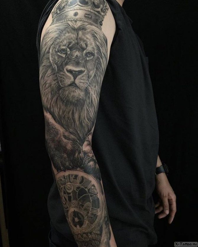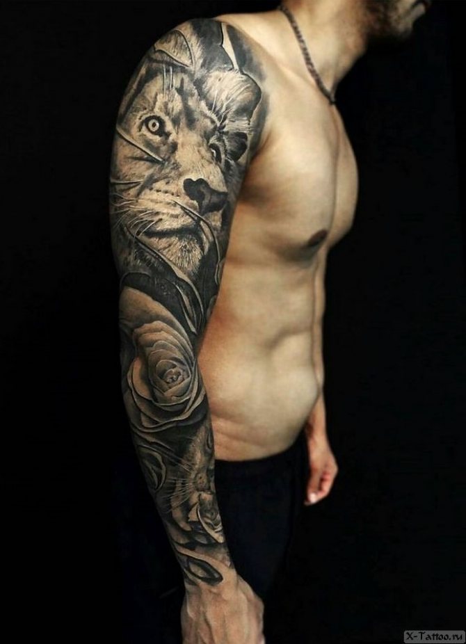 Le sujet principal des manches de tatouage pour les hommes est les animaux. Et dans la plupart des cas prédateurs : lions, tigres, loups, ours. De cette façon, les gars soulignent leur force, leur courage et leur bravoure. D'ailleurs, les prédateurs ne sont pas seulement des animaux terrestres. Cela inclut également les oiseaux, les reptiles, les créatures marines et même les créatures fictives (dragons, dinosaures, etc.).