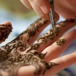 - Mehendi. À l'origine, le mehendi était un dessin rituel qui n'avait de sens et de signification que pour les femmes arabes. Pour tous les autres, il s'agissait simplement d'un beau dessin réalisé avec des couleurs spéciales. Beaucoup de belles lignes et de boucles, de fleurs et de points qui sont liés entre eux. Le dessin est fait au henné, qui s'efface avec le temps ;