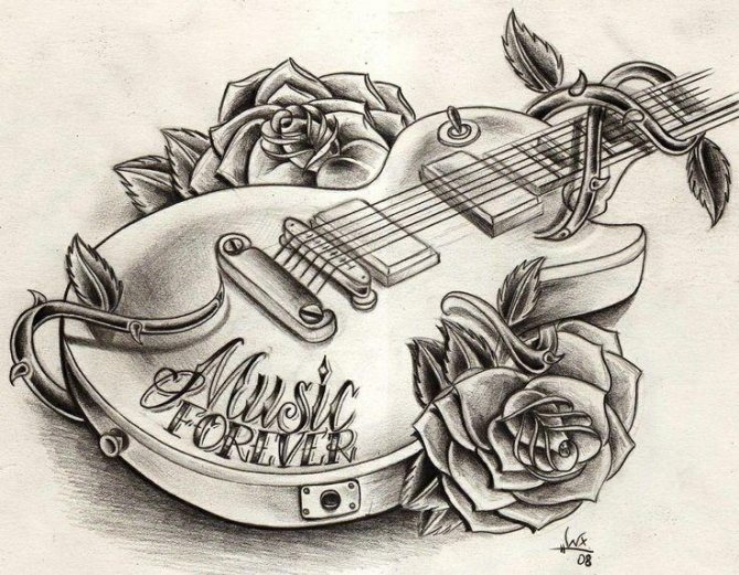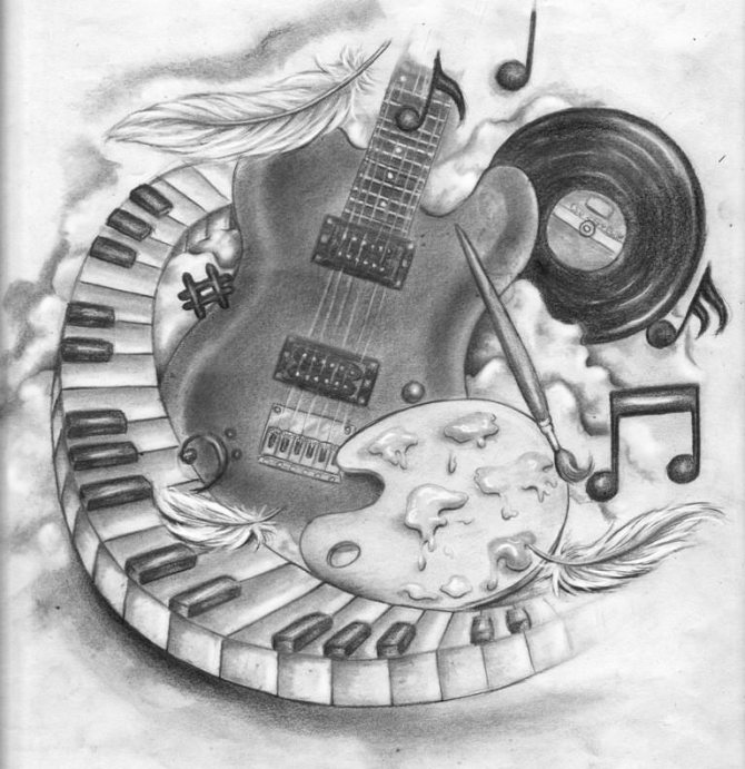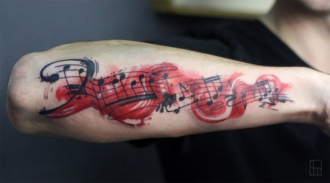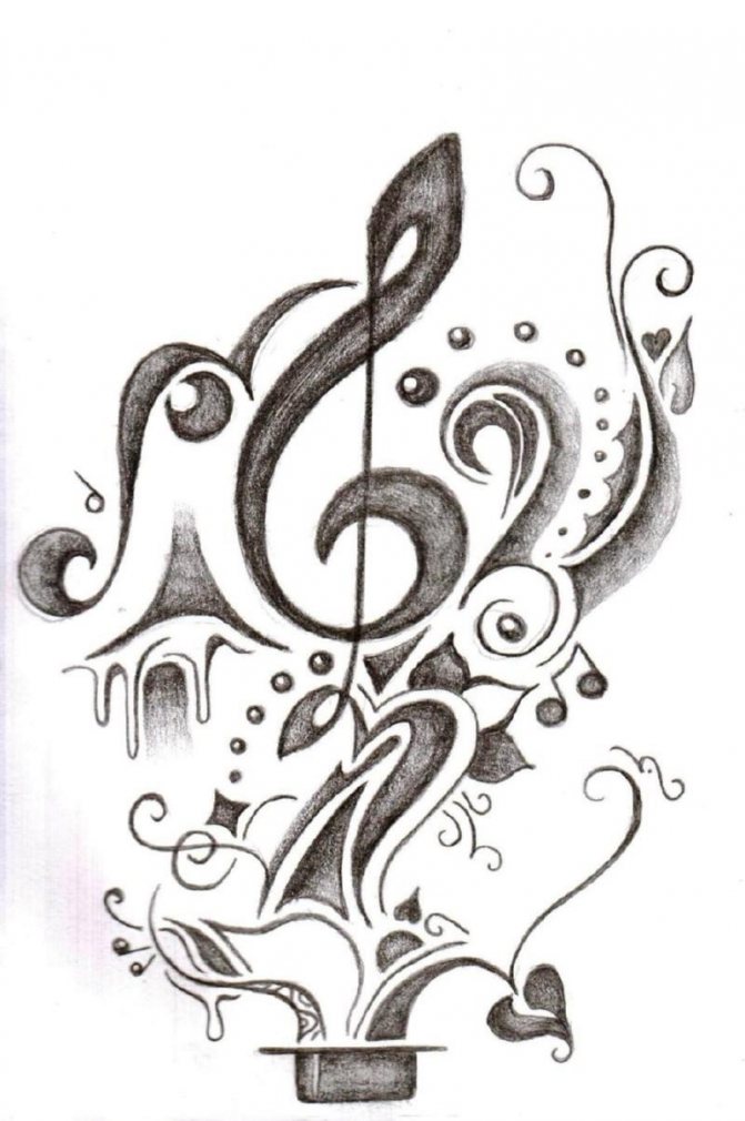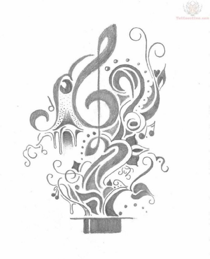 Il est recommandé de faire des croquis pour les tatouages avec musique sous la direction du propriétaire. En vous appuyant sur des croquis de tatouages musicaux trouvés sur le net, vous pouvez composer une solution originale.
