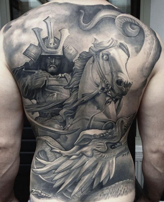 Guerrier. Les thèmes des guerriers de tous grades et rangs sont une priorité dans le tatouage masculin. Cela ne signifie pas que l'image du samouraï ou du Landskneht est battue exclusivement par des hommes.