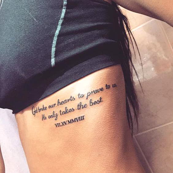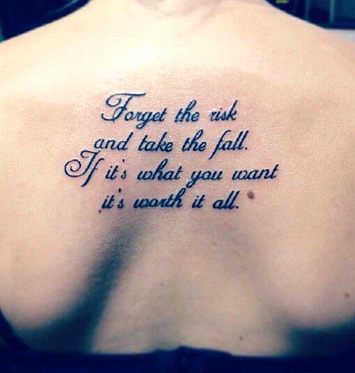 Les citations ne sont pas un couple de mots mais une phrase avec une signification profonde, ce qui signifie que de telles inscriptions peuvent être un tatouage autonome et sans éléments ou images supplémentaires. Les citations peuvent porter sur différents sujets - amour, famille, amitié, vie, liberté, religion.