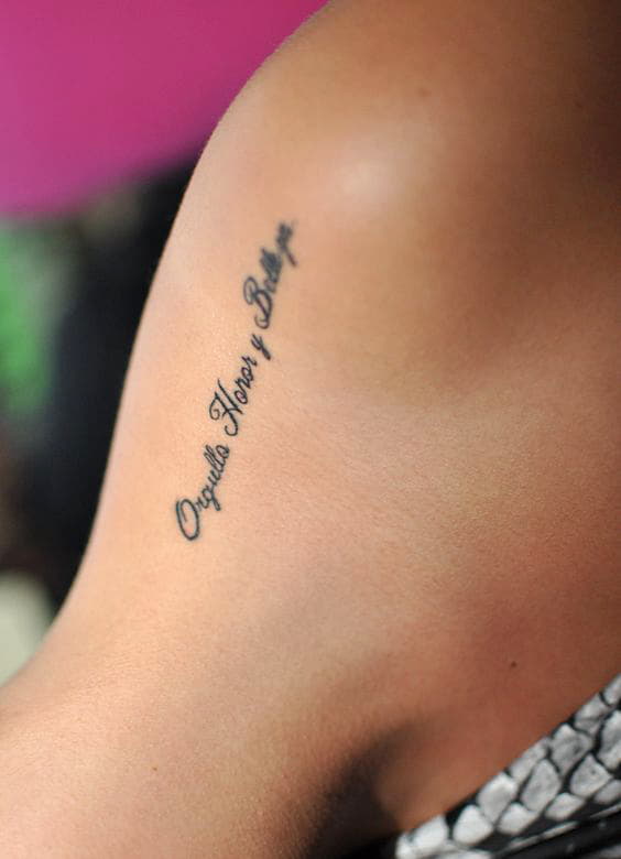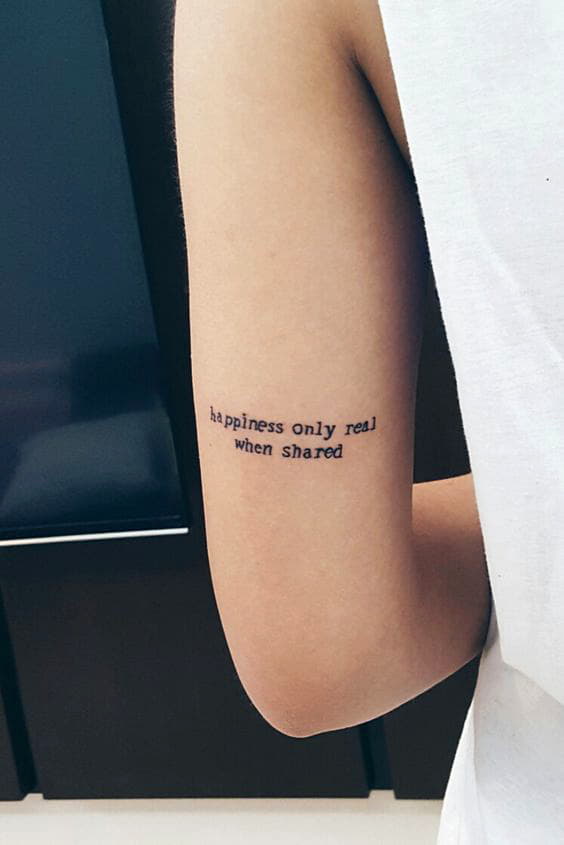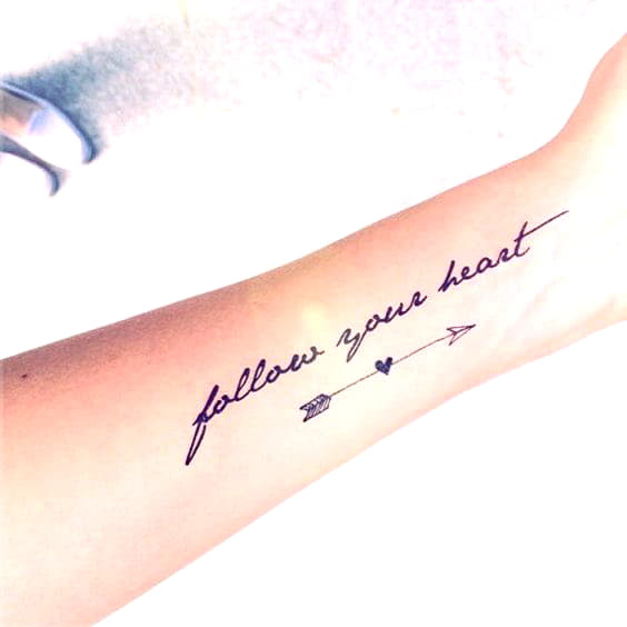 Le tatouage sur le bras sous la forme d'une inscription est devenu très populaire parmi les garçons et les filles. Les tatouages d'inscription sont fondamentalement différents de tous les autres types de tatouages. Ces images sont porteuses d'une signification et d'une idéologie spécifiques auxquelles tout le monde peut s'identifier. Une personne aura au moins une pensée suggestive sur la signification du tatouage. La citation sur le tatouage peut exprimer l'amour pour son voisin, l'amitié, les expériences, l'affection pour quelque chose, etc. Un tatouage d'inscription peut être fait sur n'importe quelle partie du corps, mais l'endroit le plus populaire pour les citations est le bras. La taille du tatouage est également déterminée par la préférence de la personne. Il peut s'agir d'un seul mot ou d'une seule phrase. Vous pouvez mettre sur votre corps un passage entier d'une œuvre ou d'une expression que vous aimez.