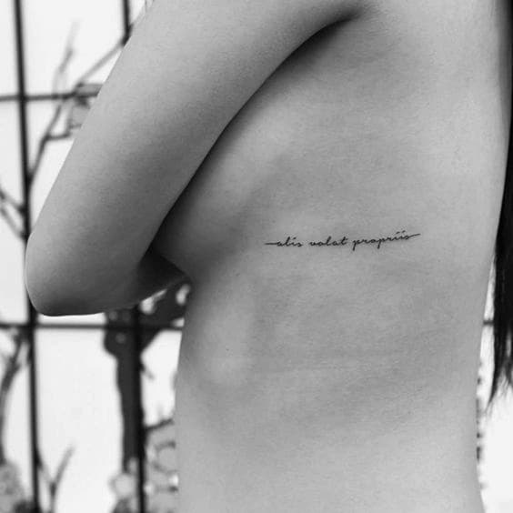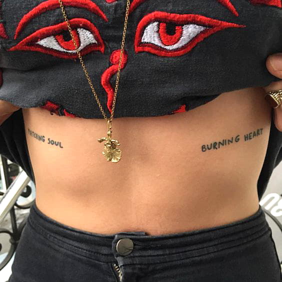 La deuxième langue la plus populaire pour les tatouages sous forme d'inscriptions est l'anglais. C'est la langue que la plupart des gens apprennent, alors assurez-vous que vous ne pouvez pas en cacher le sens. Le seul moyen est de choisir un endroit qui se trouve presque toujours sous vos vêtements.