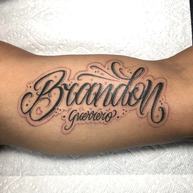 Le cou, les côtes et les bras sont propices aux tatouages de noms. Les phrases drôles - blagues légères, sarcasme, ironie - peuvent faire bonne figure sur la jambe. Il peut même s'agir d'un mème qui comprend des mots. Il est rare de voir de l'écriture sur la cuisse.