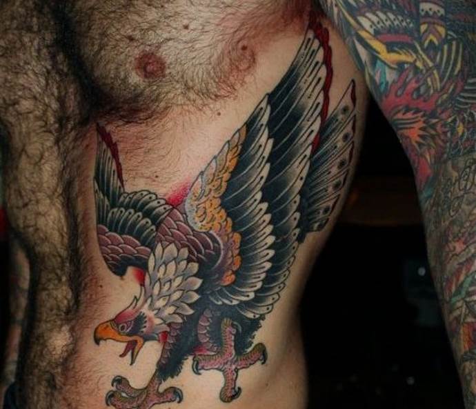 Tatouages sur les côtes d'un hommeLes tatouages sur les côtes d'un homme ont tendance à être plus grands que sur celles d'une femme. Cela est dû à la proximité des os avec la peau et à la tension de la peau au point d'attache du sternum. Cela rend le processus de piquage des images douloureux.
