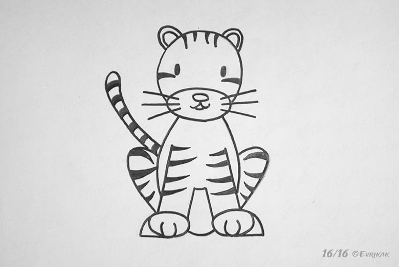 Le tigre peut être drôle, caricatural. Dans ce cas, vous pouvez le dessiner comme ceci.