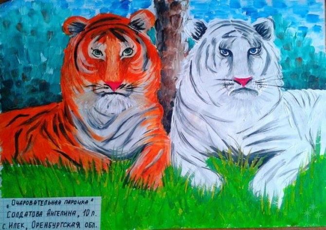Les dessins représentant un tigre attirent toujours l'attention. L'animal a toujours impressionné les gens. La coloration vive et ardente donnera vie à n'importe quelle peinture.