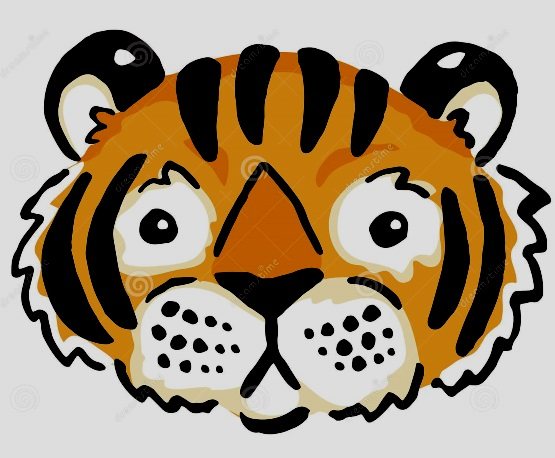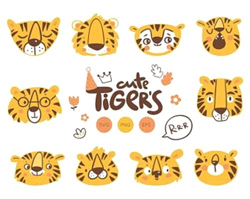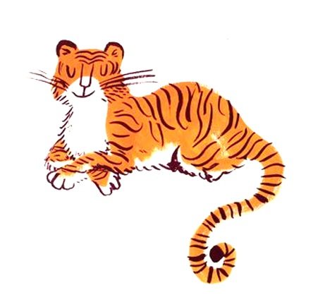 Un torse de tigre de style enfantin peut également être ajouté au visage comme dans l'exemple ci-dessous. Le tigre de dessin animé est juste assis sur ses fesses, les jambes allongées sur les côtés... en train de méditer.
