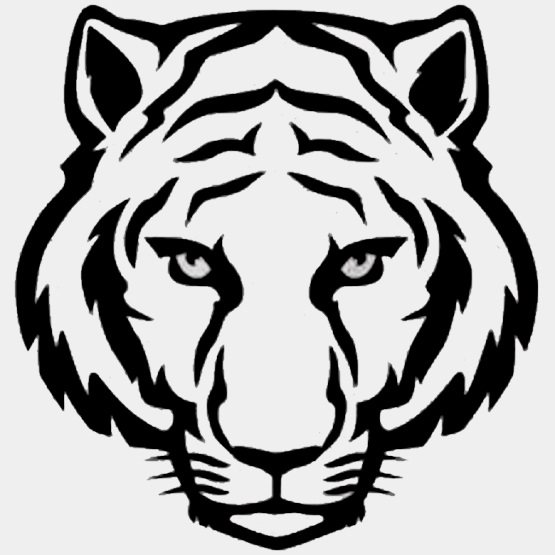 Et voici le dessin d'un tigre simple ci-dessous - on peut voir comment l'ajout d'un pont nasal triangulaire crée immédiatement un visage de tigre.