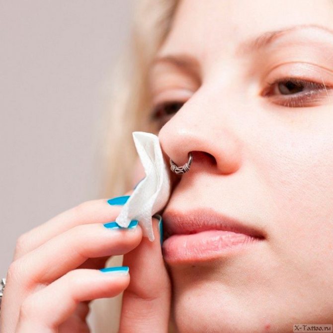 Un rhume ou une exacerbation d'allergies saisonnières est une contre-indication à tout type de piercing. Si le nez qui coule est apparu après la ponction, augmentez la fréquence d'utilisation du sérum physiologique (3 à 4 fois par jour). Cela normalisera le mucus nasal. Les sprays et gouttes d'eau de mer (Aqualor, Aqua Maris) peuvent également être utilisés.