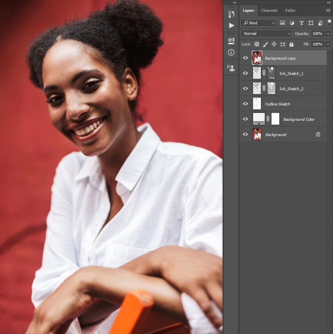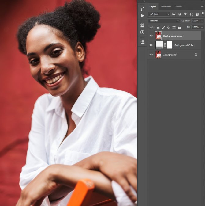 Sélectionnez le calque Arrière-plan et appuyez sur Ctrl+J pour créer une copie du calque. Faites glisser le calque vers le haut du panneau des calques.