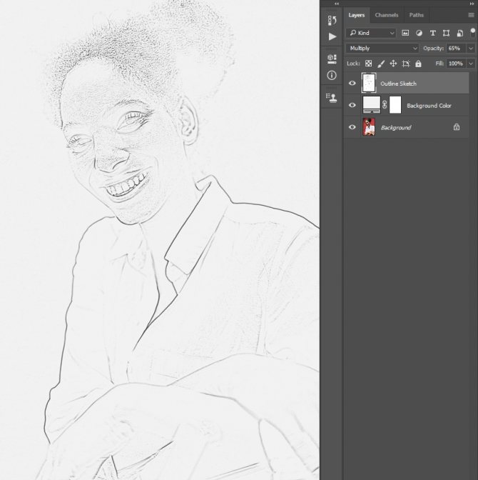 Changez le mode de mélange en Multiplier (Multiplier) avec une opacité de 65%. Couche de nom Esquisse.