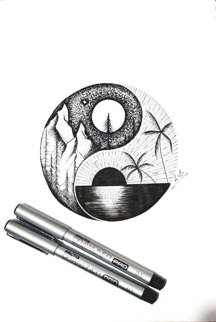Le zentangle se fait en noir et blanc, avec certaines lignes claires, sous la forme d'une abstraction. Le croquis doit être fini de tous les côtés et ressembler à une seule image.