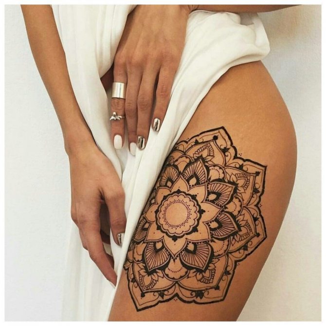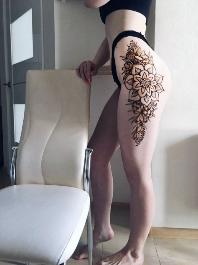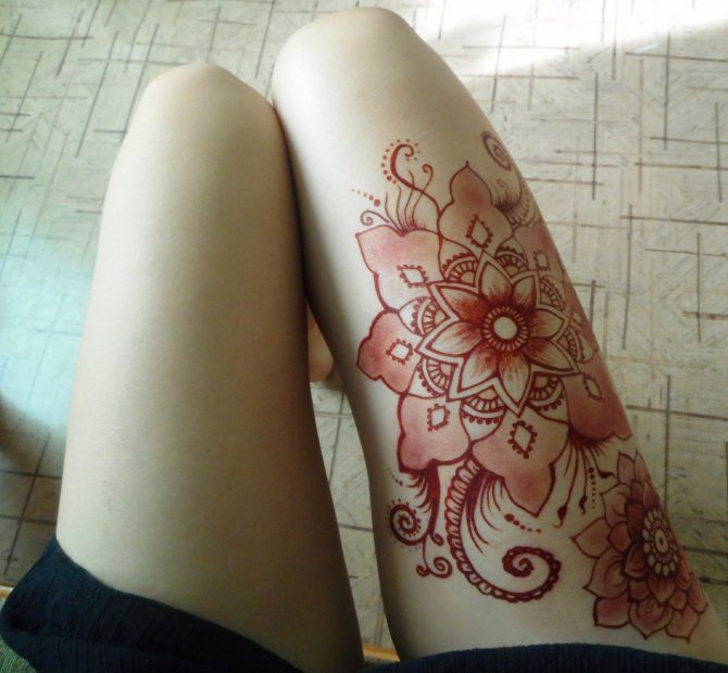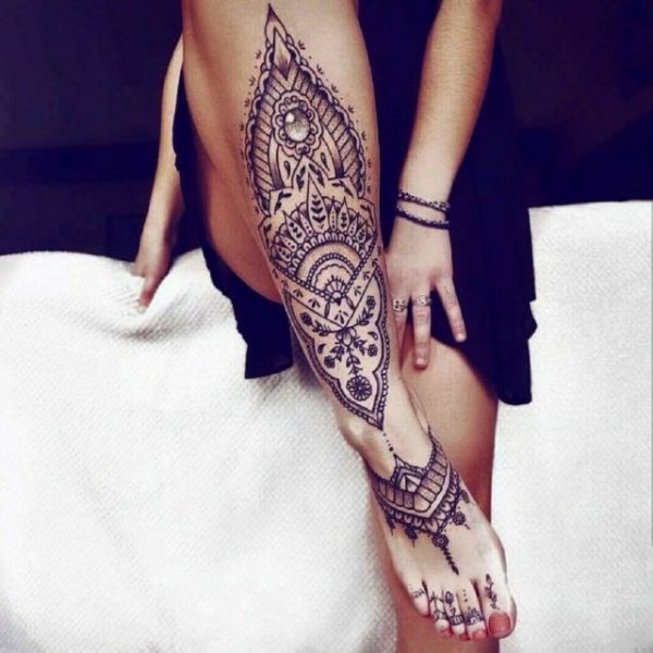 Une note ! Non seulement les filles peuvent faire des dessins au henné sur les jambes, mais aussi les hommes. Cependant, le sexe fort préfère les tatouages permanents et choisit pour leur application d'autres parties du corps.