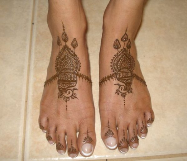 Les personnes ayant de l'imagination et des compétences artistiques dessinent le mehendi sur leurs propres pieds. Ceux qui ne sont pas doués par la nature utilisent des dessins pré-dessinés ou des pochoirs pour créer des motifs simples.