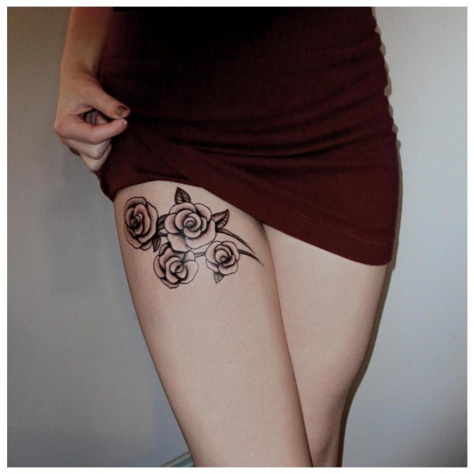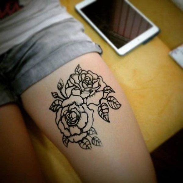 - rose - Le tatouage de rose peut souvent être vu sur le corps des filles, le dessiner au henné et sur la jambe, c'est une belle fleur qui symbolise la gentillesse et l'innocence, et en combinaison avec les feuilles signifie la prospérité ;