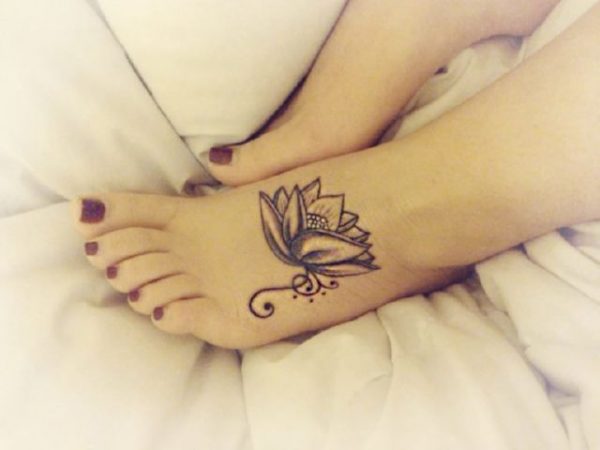 - lotus - Dans les cultures orientales, la fleur de lotus est considérée comme sacrée et est souvent peinte sur le pied, mais elle peut aussi être peinte sur une autre partie de la jambe. La signification du symbole varie en fonction du nombre de pétales et de la complexité du dessin, il s'agit généralement d'un symbole de sagesse, de féminité et de sexualité ;