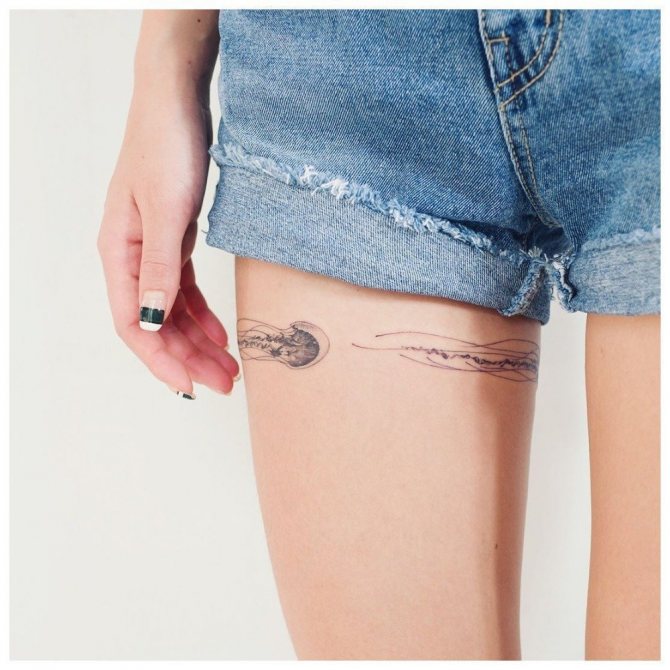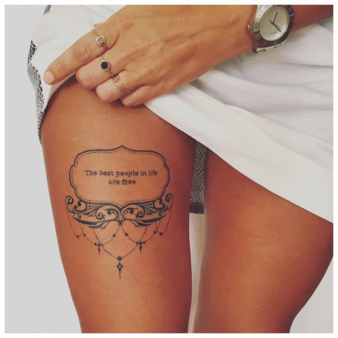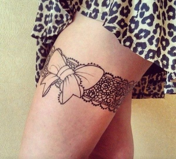 - jarretière - Le porte-jarretelles est un tatouage d'une jarretière de bas en haut de la jambe, symbole de votre engagement envers l'aventure et le courage ;