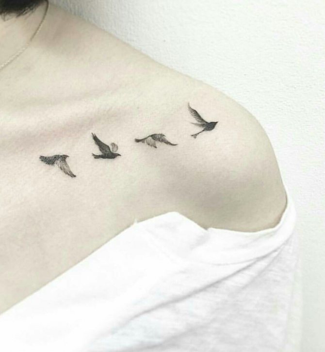 Le tatouage des oiseaux est devenu populaire grâce à son interprétation : vol, liberté, alacrité, sublimité et légèreté. De toutes les créatures de la planète, seuls les oiseaux sont autorisés à voler aussi haut au-dessus du sol. Les tatouages représentant des oiseaux conviendront aux filles qui sont déterminées et créatives. Au sens figuré, l'état de vol signifie réflexion, créativité, création de quelque chose de nouveau.