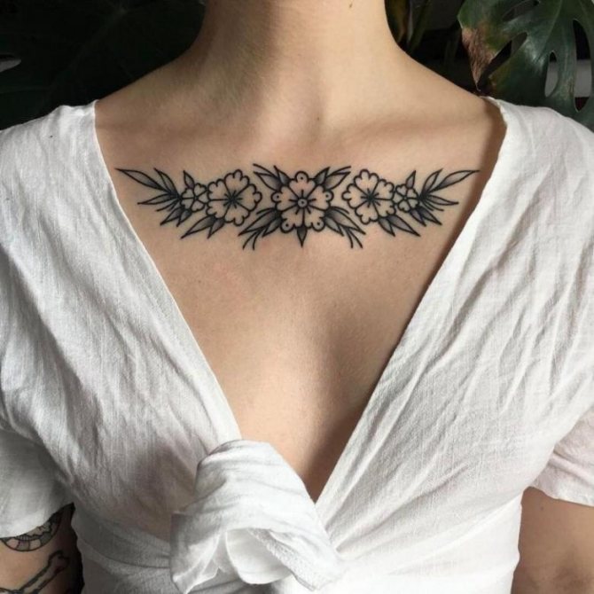 Tatouage de fleur sur la clavicule