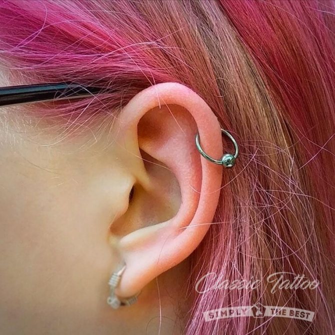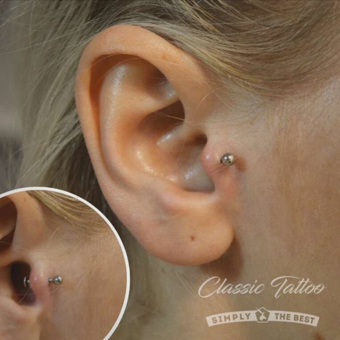 Un piercing est réalisé sur le scamper, du côté gauche ou du côté droit. Guérit assez difficilement, est souvent enflammé, nécessite des soins constants pendant toute la période de guérison, qui est d'environ 2 à 3 semaines. Le piercing n'est pas très répandu.