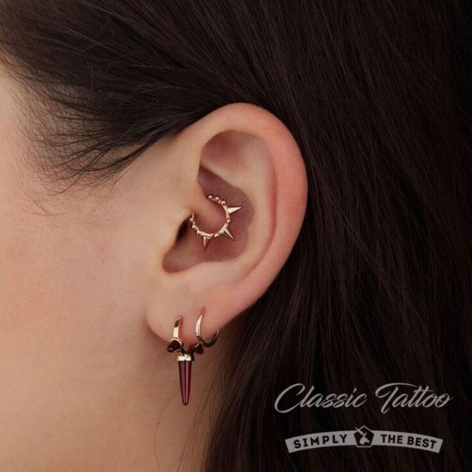 Pour la cicatrisation initiale, on place une micro-banane de 10 mm de long, avec différentes torsades (le plus souvent avec des perles de titane). Le piercing a un aspect intéressant lorsqu'une petite grappe est placée sur le dessus du bijou. Les petits anneaux ont un aspect inhabituel sur le piercing cicatrisé. Il est important de choisir le bijou pour le piercing du rook et le matériau - les alliages néoktori tels que l'or des bijoux, l'acier médical et l'argent sont composés de nickel, qui dans un piercing frais commence très rapidement à s'oxyder, ce qui entraîne une inflammation et d'autres conséquences désagréables. Les bijoux en titane sont idéaux, car c'est l'un des métaux les plus hypoallergéniques disponibles à l'heure actuelle.