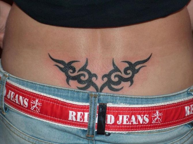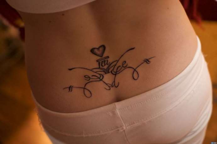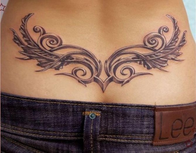 Un tatouage sur le coccyx est un bijou à la mode pour les filles. Une photo bien choisie sera un ajout élégant à l'image de son propriétaire.