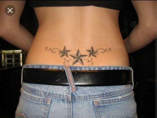 L'étoile dans le bas du dos symbolise le succès et la réalisation des souhaits. Les filles pensent que le tatouage leur apportera chance et prospérité dans tous les domaines de la vie.