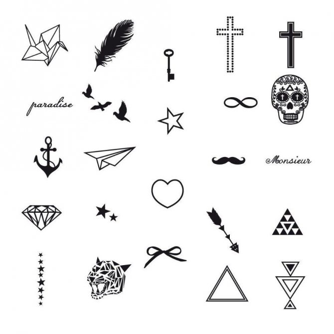 Il existe une grande variété de dessins et d'idées de tatouages miniatures de grande taille qui sont attrayants sur les cuisses des femmes. Il est possible de choisir en une fois 3-4 croquis et de demander au maître de créer sur leur base un tatouage unique.