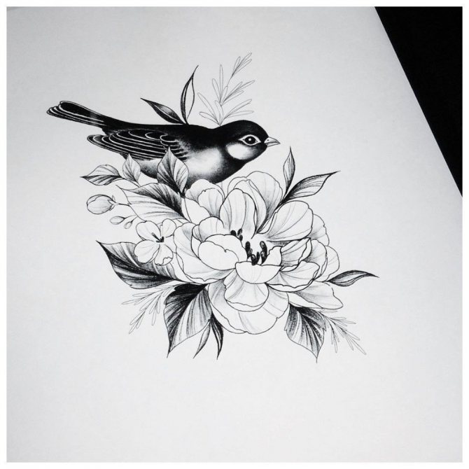 Les oiseaux sur le corps, en règle générale, sont imposés comme des représentants infantiles, doux et épris de liberté du beau sexe. Les pigeons, les hiboux, les corbeaux et les aigles sont souvent placés sur les cuisses.