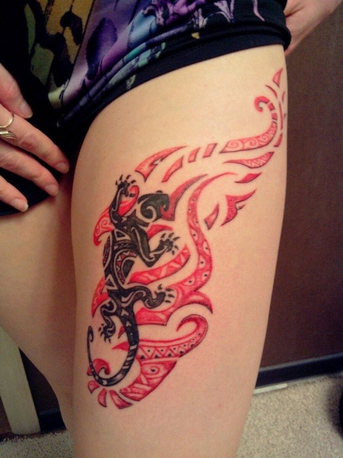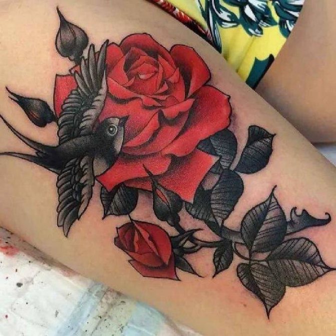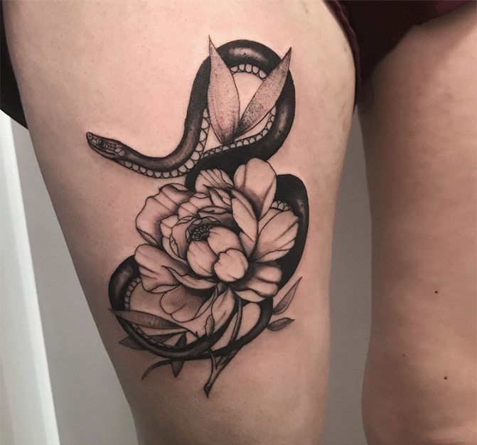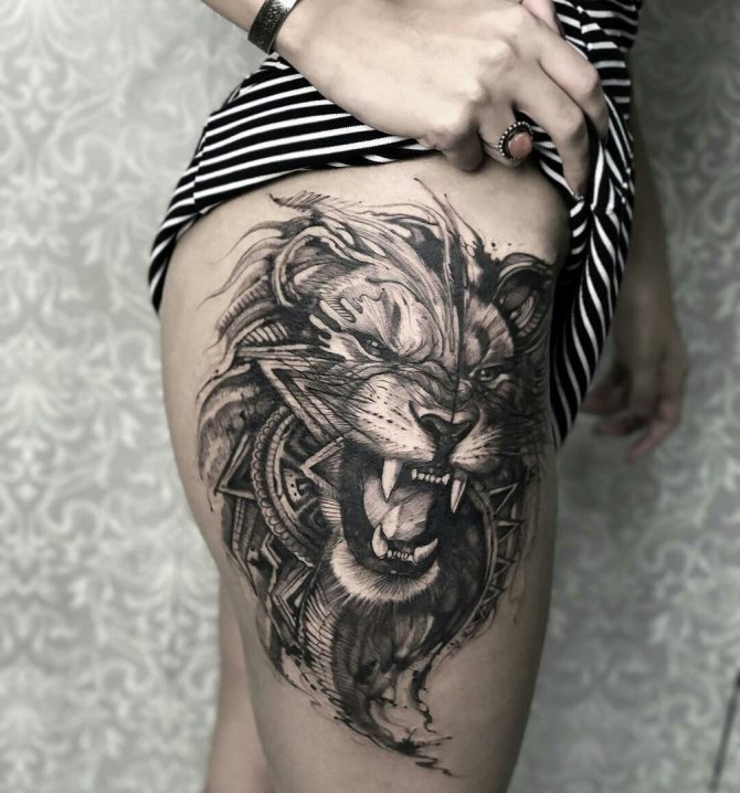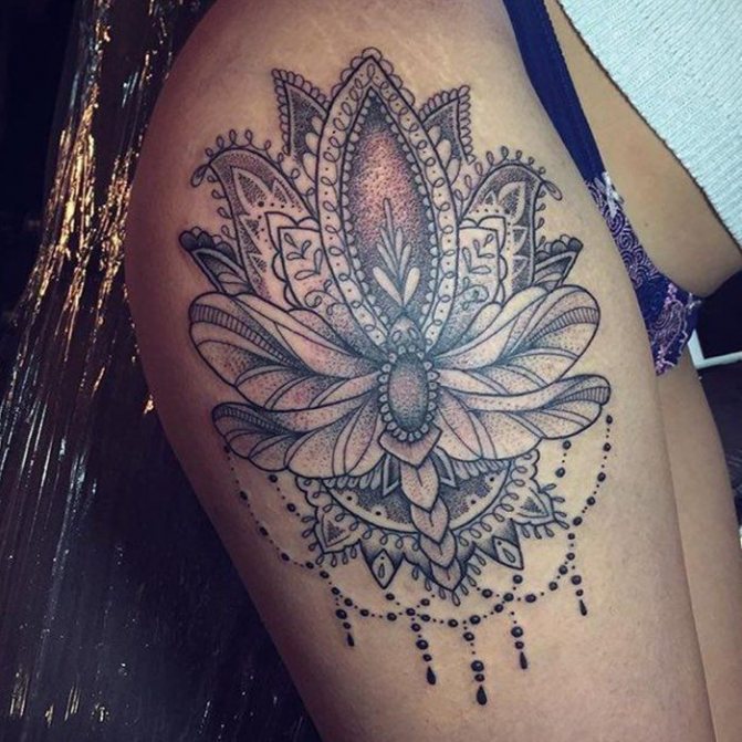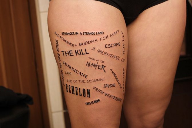 Les filles se font tatouer sur différentes parties du corps. Souvent, la cuisse est choisie comme la partie la plus attrayante du corps. Ce tatouage est caché et ne se révèle qu'à la personne la plus proche. Et la grande surface vous permet de choisir un grand design et de raconter toute une histoire.