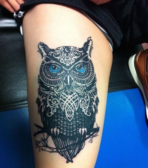 Les hiboux sur votre corps représentent la fille autonome dotée d'une intuition développée. La colombe signifie la féminité, la spiritualité et la liberté de pensée.