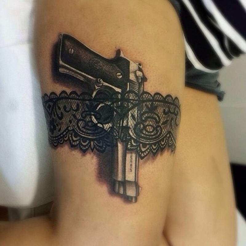 Un pistolet avec une jarretière sur la hanche est sexy et audacieux.