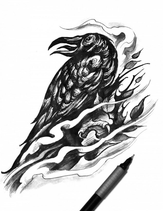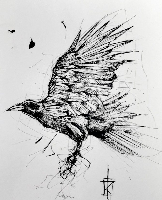 Esquisse d'un corbeau en style croquis Dessin d'un hibou en style Dotwork